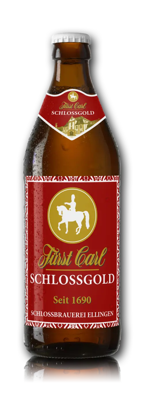 Fürst Carl Schlossgold Unser Export trägt mit Stolz den Namen Schlossgold, es ist die Nummer 1 unserer Schlossbrauerei. Spritziger Antrunk, angenehme Rezenz, runder vollmundiger Körper, im Abgang eine Harmonie aus Süße und Bittere, die zum Weitertrinken anregt. FARBE: goldgelb GESCHMACK: mild und samtig-weich, Harmonie aus dezenter Bittere und Süße HOPFEN: Hallertauer Gold, Spalt Spalter, Hallertauer Mittelfrüh ALKOHOLGEHALT: 5,1%-vol. STAMMWÜRZE: 12,8 ° Plato GEBINDE: 30 l KEG – 20x0,5 l Kasten GESCHMACK: spritzig und vollmundig, Harmonie aus Bittere und Süße