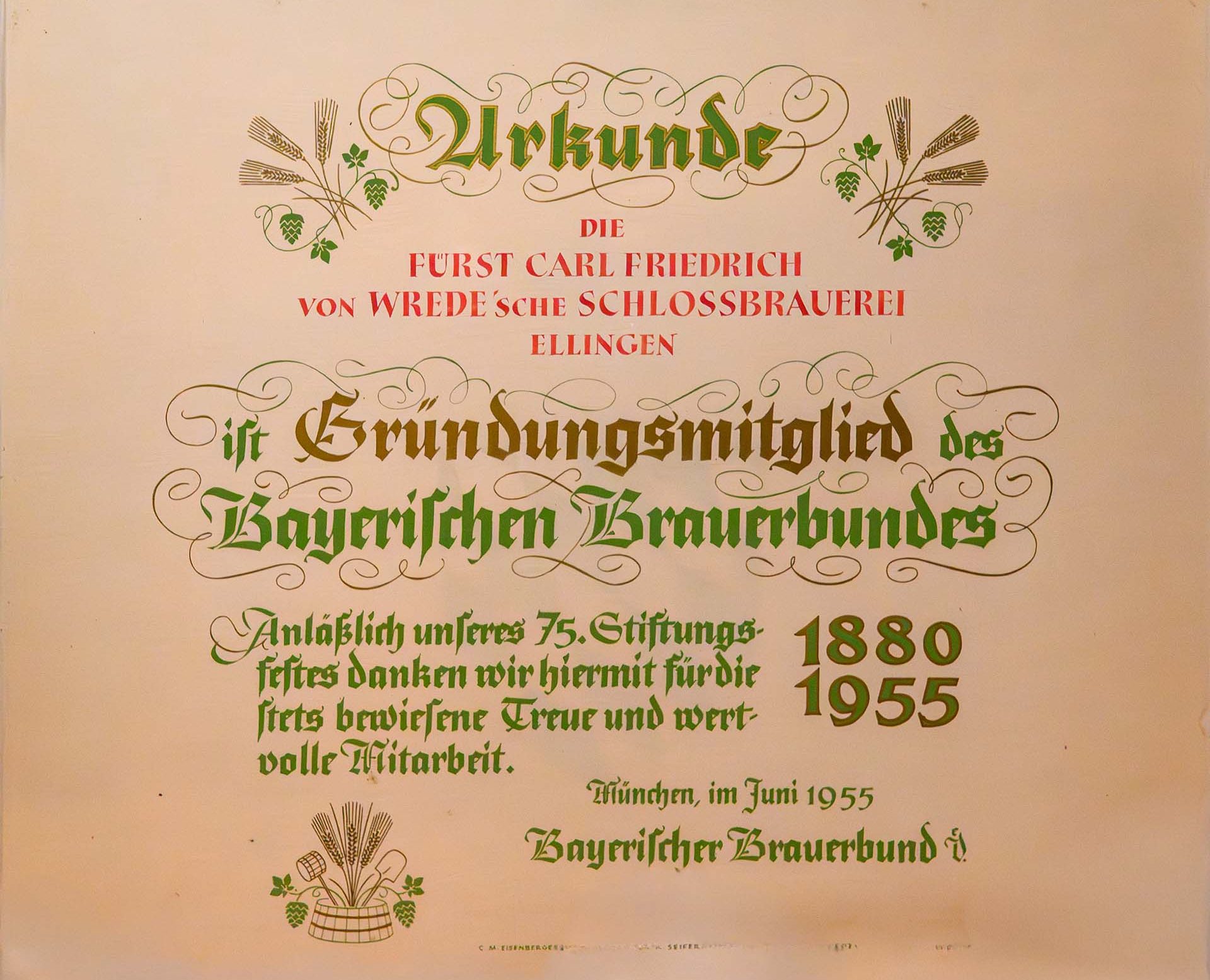 Im Jahr 1690 wird erstmals eine Brauerei im Vorhof des alten Schlosses von Ellingen urkundlich erwähnt – damals als Brauerei der Deutschordensresidenz Ellingen mit Sitz des Landkomturs der Ballei Franken. Die Ballei Franken war die mächtigste und reichste Ballei des Deutschen Ordens. Damit beginnt die über dreihundertjährige Tradition der Brauerei.