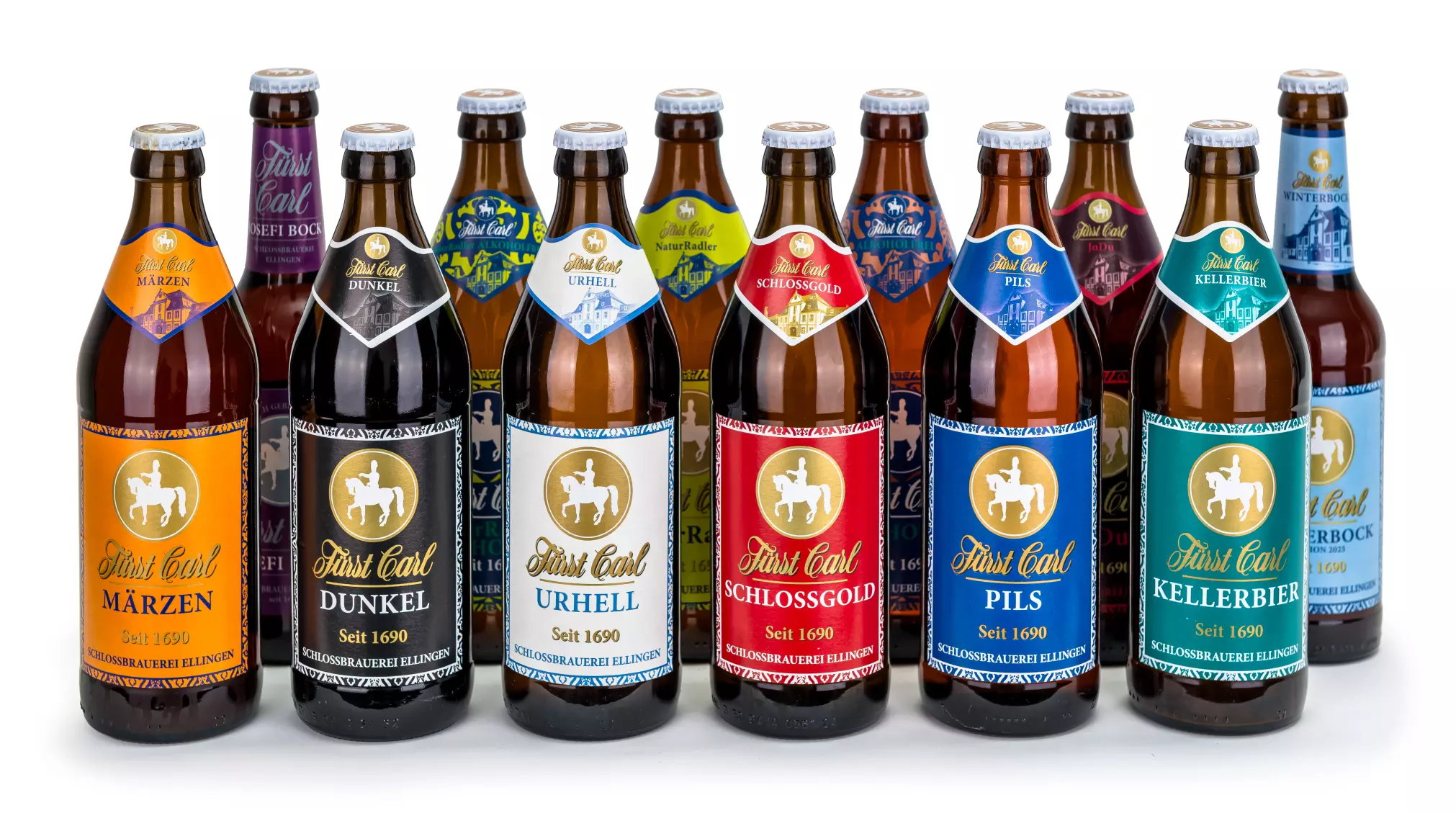 12 Bierspezialitäten nach Verfügbarkeit frei wählbar aus: Alkoholfrei 0,5 l, NaturRadler alkoholfrei 0,5 l, Dunkel 0,5 l, JoDu 0,5 l, Kellerbier 0,5 l, Märzen 0,5 l, NaturRadler 0,5 l, Pils 0,5 l, Schlossgold 0,5 l, Urhell 0,5 l, Winterbock 0,33 l, Josefibock 0,33 l